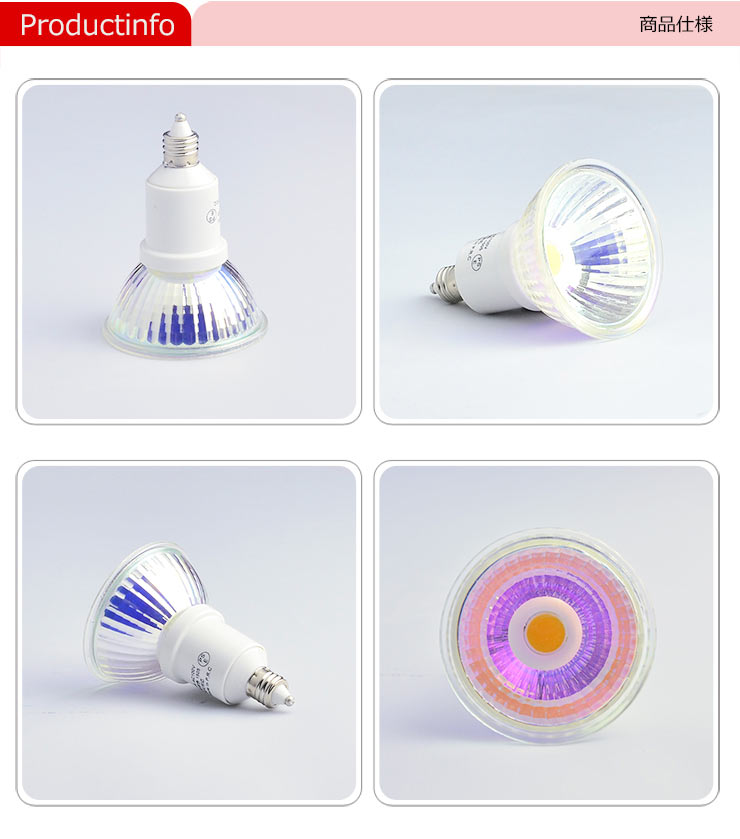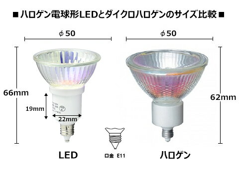 ・メーカー希望小売価格はメーカーサイトに基づいて掲載しています【仕様】LED電球(ハロゲン形 JDRφ50)口金:E11 ※調光器対応消費電力:4Wビーム角:30度色温度:濃い電球色2300K / 電球色 2700K全光束:濃い電球色370lm / 電球色 390lm (ハロゲン40w相当)演色性:Ra80以上LED数:COBタイプサイズ:φ50x66mm定格電圧(周波数):AC100V (50/60Hz)材質:耐熱ガラス+PBT重量:42g1年間製品保証定格寿命40,000時間以上※ほたるスイッチに対応※従来のハロゲン電球と同様に発光■マイナーチェンジ 更新Ver1.1 2016年09月23日※部材の変更(主に反射板)により、配光の見え方が若干異なります★