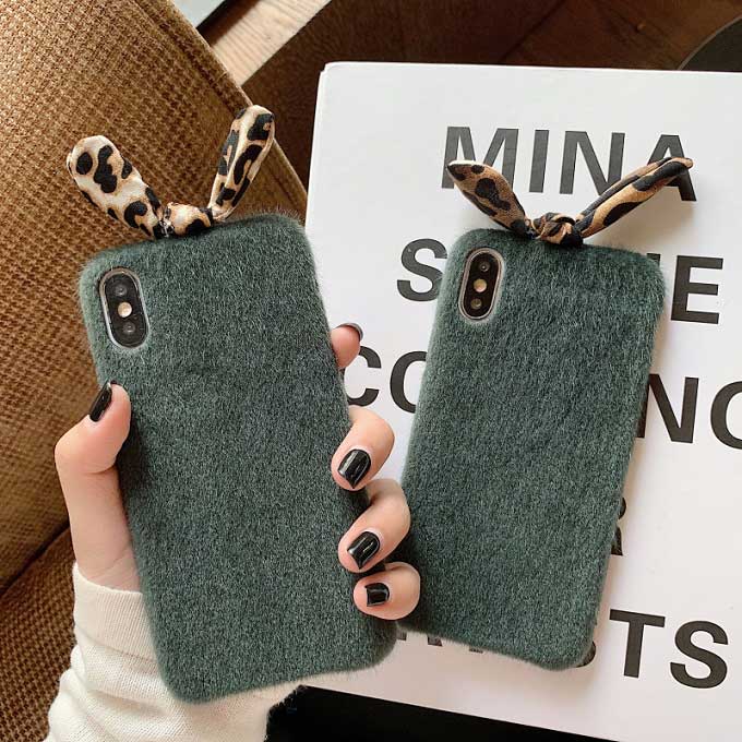 【メール便送料無料】≪大人気レオパードシリーズ≫高級感溢れる起毛ボディが大人女子にぴったり♪可愛いヒョウ柄猫耳風リボンがとってもかわいいスマホケース iPhone6/6s,6P/6sPlus,iPhone7/8,7/8Plus,iPhoneX/Xs,iPhoneXR,iPhoneXS Max,iPhone11,11Pro,11Pro Max