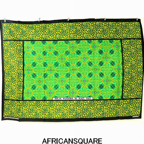 【ケニア】カンガ布 フチ縫い 小花柄 グリーン