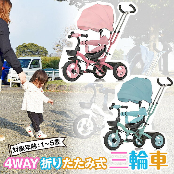 【ピンクとブルー限定特価★8,990円】三輪車 折りたたみ 幼児用 かじとり 4way 4in1 座面回転 対面可能 サンシェード付き 乗用玩具 子供用自転車 キッズ お祝い プレゼント 誕生日 クリスマス